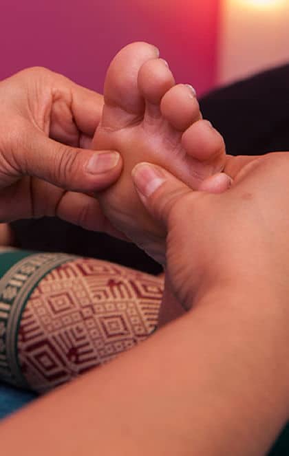 Bei der Fußmassage konzentriert man sich auf die Stimulation bestimmter Druckpunkte der Füße, mit dem Ziel das Wohlbefinden des ganzen Körpers positiv zu beeinflussen.